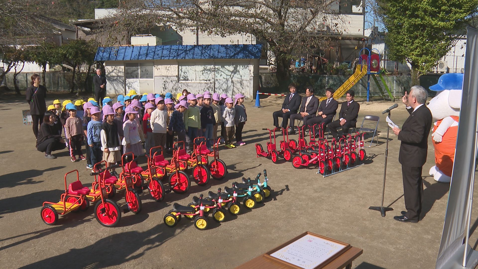 「素敵な三輪車ありがとう」こども園に遊具をプレゼント 県自動車整備振興会【愛媛】