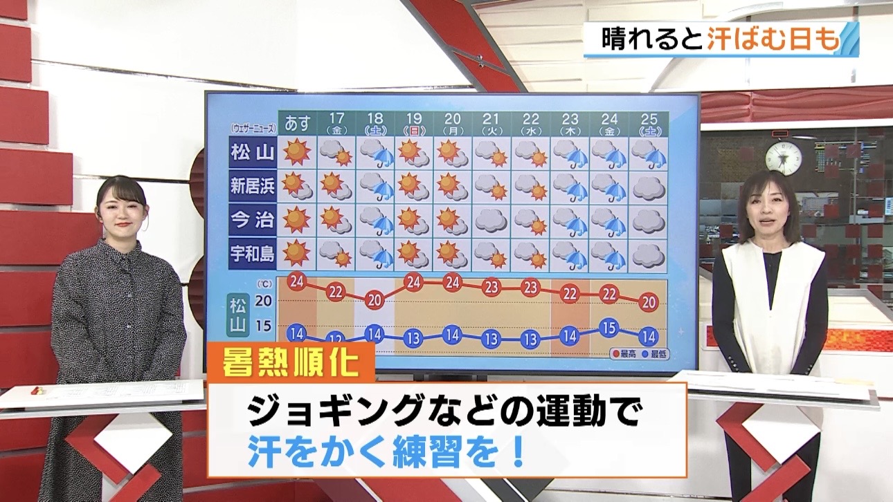 週末の愛媛の天気は?土曜は折り畳み傘、日曜は日傘や水分補給を
