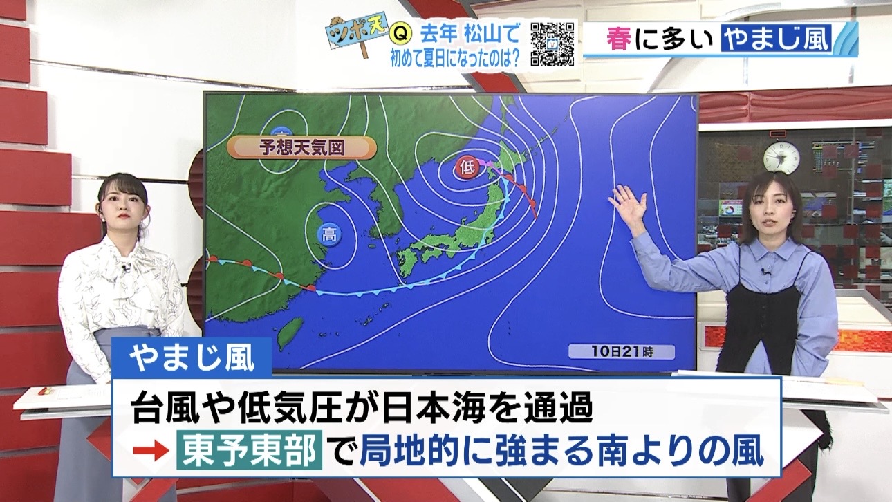 あすの愛媛県は春の嵐に、明け方から昼前は激しい雨 やまじ風にも注意