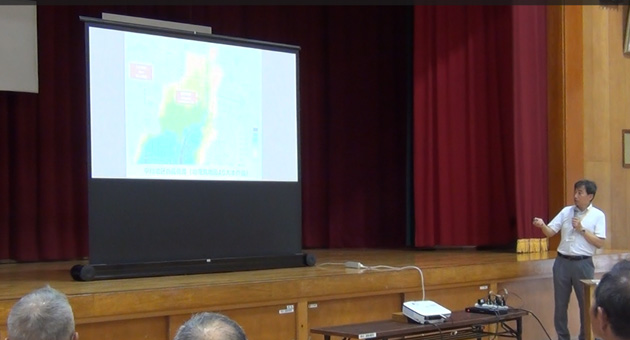 防災セミナーでは、愛媛大学地域協働センター南予 大本敬久副センター長による「中川地区の災害
