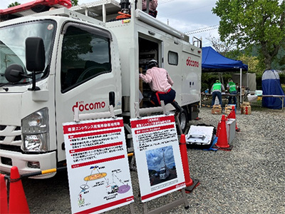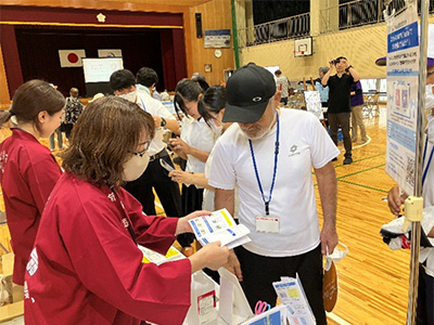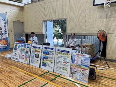 南海放送からは5月の防災フェスでも実施した松山アーバンデザインセンター製作の参加型シールクイズやradiko紹介ブースなどの展示・ワークショップを行いました。他にも松山地方気象台や地元消防署、自衛隊、警察などの車両展示、地震体験車での体験、通信インフラや電力インフラ各社のブース展示など愛媛県、西予市、各企業が連携して訓練の参加者に情報発信を行っていました。