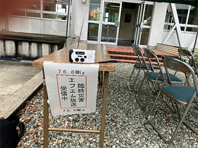 また、当日は南海放送の災害時臨時FM局を開設し、2時間に渡り中川地区に76.6MHzで避難の呼びかけや災害に関する情報を放送しました。