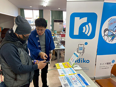 南海放送のブースでは、自治会関係者を中心にradikoアプリへの関心が高く、新たに35名がアプリをインストールするなど、非常時の情報収集手段としてのラジオ・ラジコの重要性を改めて伝える機会となりました。