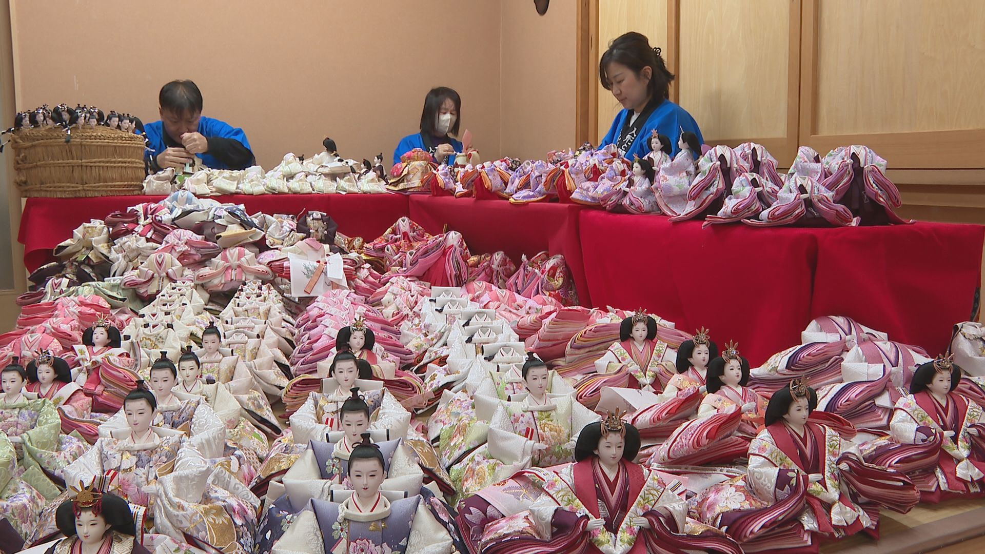 新居浜市の人形店で、3月の桃の節句に向けたひな人形作りがピークを迎えています。 新居浜市萩生の「人形と鯉のぼりの村上」では、10月中旬に始まったひな人形作りがピークを迎えています。 工房では、職人が頭と体のバランスを確かめながら組み立てたり、西陣織の十二単にアイロンをかけたりする作業にあたっていました。 店によると、最近は場所をとらない男雛と女雛だけを飾る親王飾りの人気が高いということです。 また全体的に淡くやわらかな色合いの人形が好まれているということで売れ筋の価格は20万円前後だということです。 ■人形と鯉のぼりの村上 村上 貴さん 「 笑顔で飾ってもらえたら、やっぱりうれしいです」 ひな人形作りは今月29日まで続けられ、期間中およそ250セットを仕上げるということです。