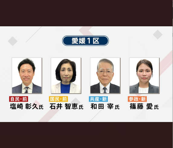 【愛媛1区】第一声は?松山市が選挙区 前職と新人のあわせて4人が立候補