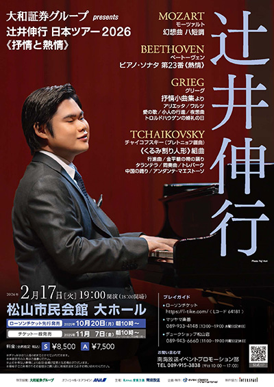 名門ドイツ・グラモフォンと日本のピアニスト初となる専属契約を結び、デビューアルバムとなったベートーヴェン:ハンマークラヴィーアも高い評価を受け、欧米での人気を不動のものとする辻井伸行が、前半はモーツァルトとベートーヴェンの名曲、後半はグリーグとチャイコフスキーの人気曲を演奏する、「美しさ」と「情熱」に圧倒される一期一会のピアノ・リサイタル。