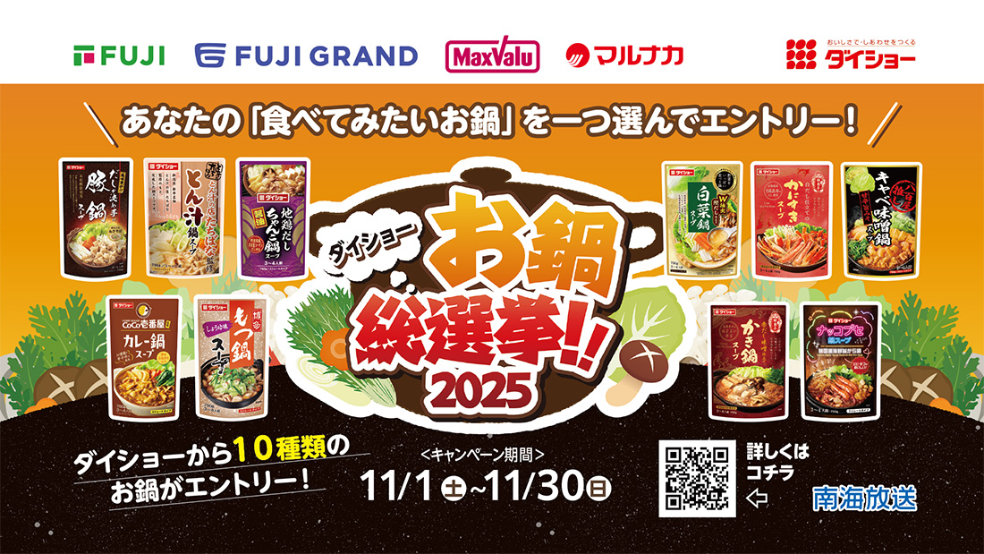 フジ・フジグラン・マックスバリュ・マルナカ ダイショーお鍋総選挙2025。あなたの食べてみたい「お鍋」を選んでエントリー!