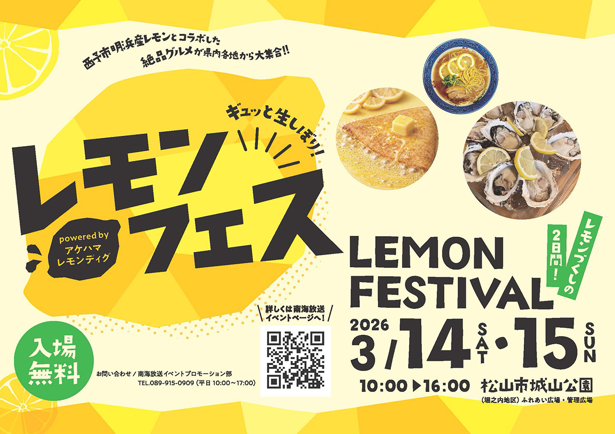| 2 | 本部 | ・「アケハマレモンディグ」オリジナルグッズの販売 ・南海放送イベント周遊スタンプラリー ・「もぎたて×銘店の味」情報大募集 |