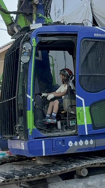 KEIPI パワーショベルに始めて乗りました。椅子の座り心地がよく、長い間仕事をしても疲れなさそうでした。パワーショベルは、たくさんのゴミを移動するのに大活躍でした。