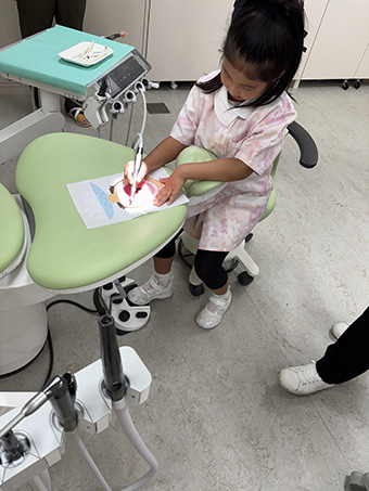 みゆ 初めて体験して、いつも歯医者さんで、歯科衛生士さんがしてくれていることが分かりました。どんな機械を使っているのかもよく分かって、少し怖くなくなりました。