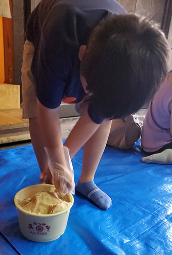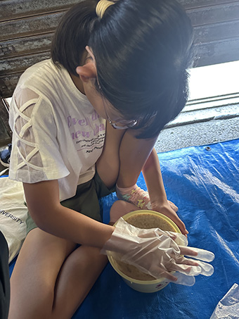 特に大豆をつぶす作業や、塩とこうじと大豆を混ぜたりするのが大変でした。