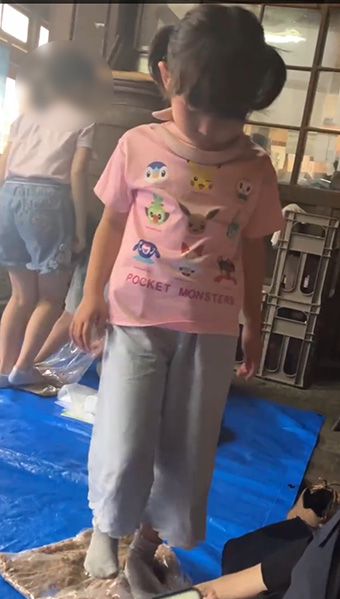 うーちゃん 材料を踏んで混ぜる作業が大変でした。これから、「美味しくなぁれ」と声をかけてあげながら発酵させるのを頑張ります!