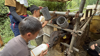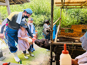 牛を育てるのは餌も重たいし、うんちもたくさんするから片付けも大変だし、赤ちゃんにミルクをあげたり、とても大変な仕事だと知りました。自分で赤ちゃんにミルクをあげられたのがうれしかったです。