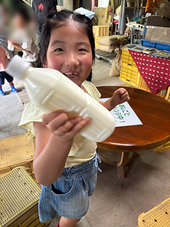 ペットボトルに入った生乳から作るバター作りは、思ったより大変でした。できたバターは、クリームのようでおいしかったです。