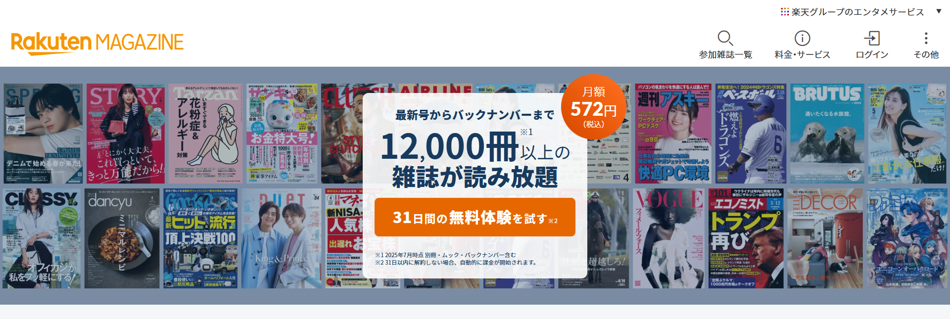 初回登録時には、31日間無料で利用することもできます。「雑誌以外の本をあまり読まない」という方には、特に楽天マガジンがおすすめです。