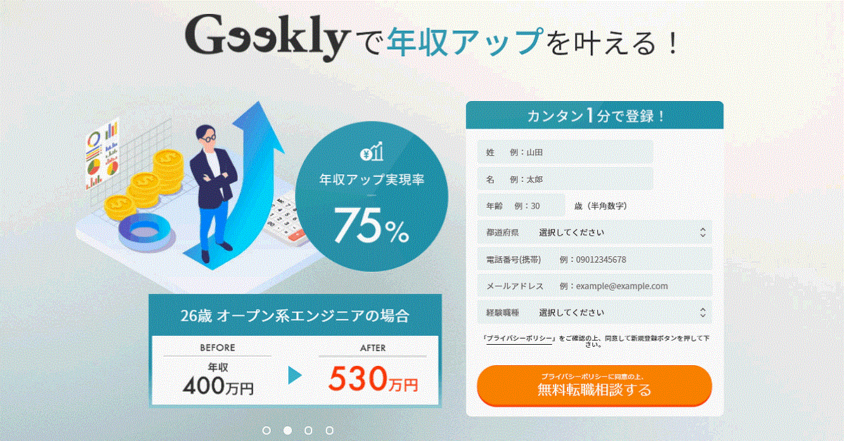 Geeklyギークリーは、IT・ゲーム業界に特化した求人情報を提供するサイトで、特に30代のエンジニアやクリエイターに人気があります。ニッチな求人情報が多く、専門性を活かせる職場が見つかります。