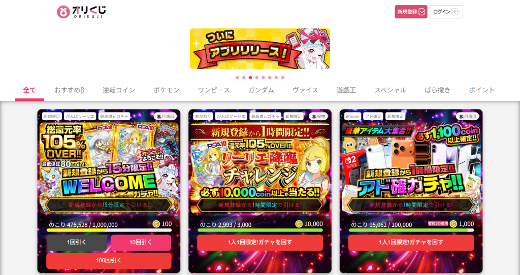 - キャンペーン: 公式LINEアカウントを友だち登録すると、最大10,000コインがもらえるキャンペーンも実施されており、お得にオリパを購入するチャンスがあります。