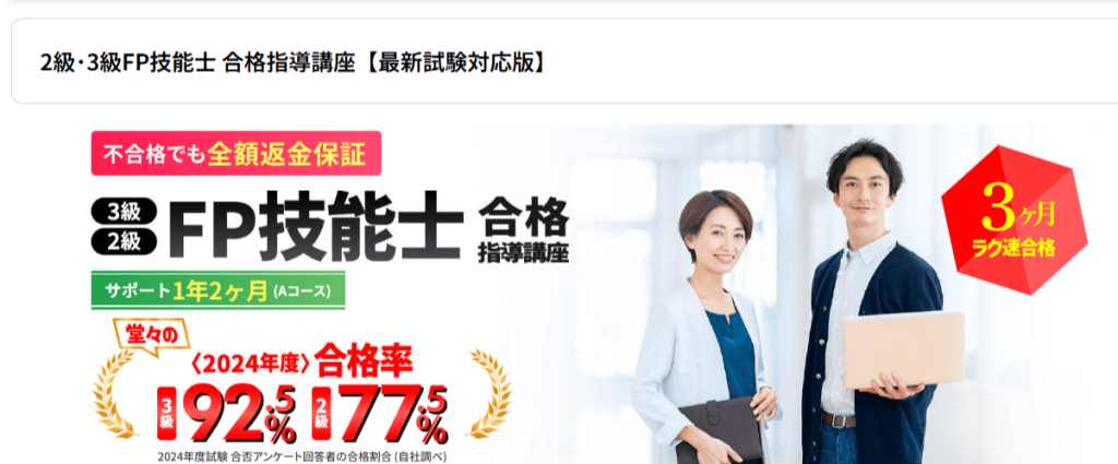 試験によく出る箇所だけ徹底して学べるため、高い合格率を誇ります。