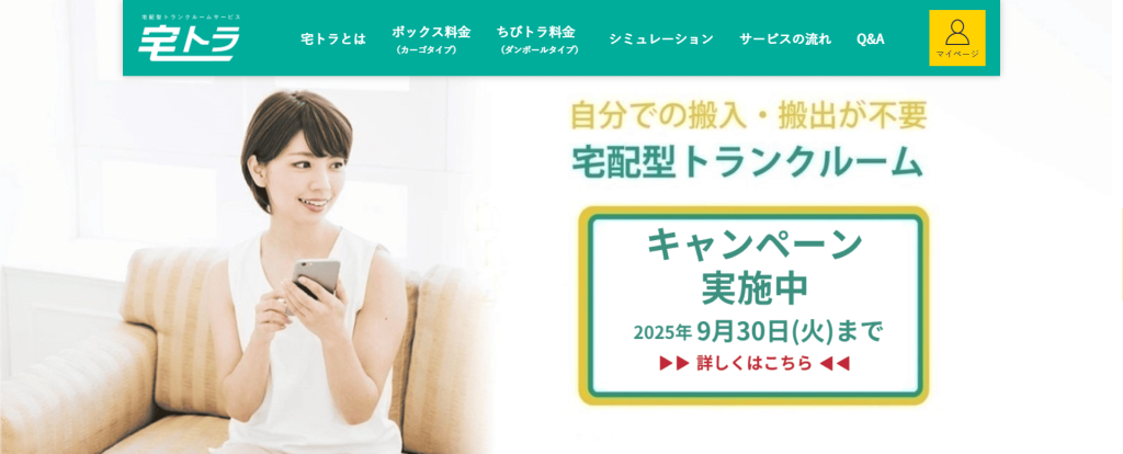 宅トラは、株式会社クオリティライフ・コンシェルジュが提供する宅配型トランクルームサービスで、手軽に利用できるのが特徴です。ダンボール単位や大型荷物までさまざまなサイズの荷物を預けることができ、ヤマト運輸の配送網のため全国どこでも利用できます。