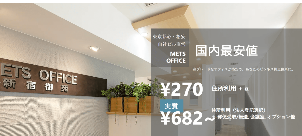 主なサービス内容 | 法人登記、住所貸し、郵便物受け取り・転送 電話対応、来客対応、会議室利用 |