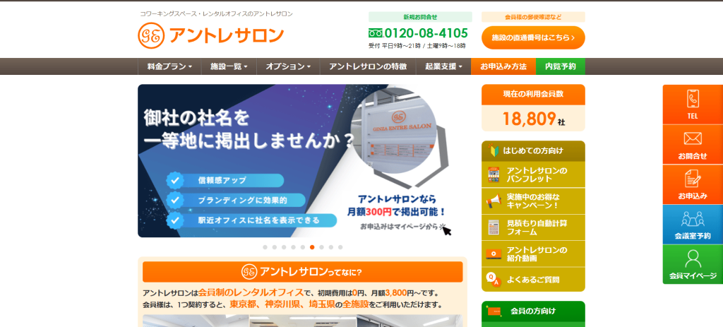 アントレサロンは、東京都、神奈川県、埼玉県に計13拠点を持つバーチャルオフィスおよびコワーキングスペースです。初期費用はかからず、低コストで一等地の住所を利用できるため、起業家やフリーランサー向けです。