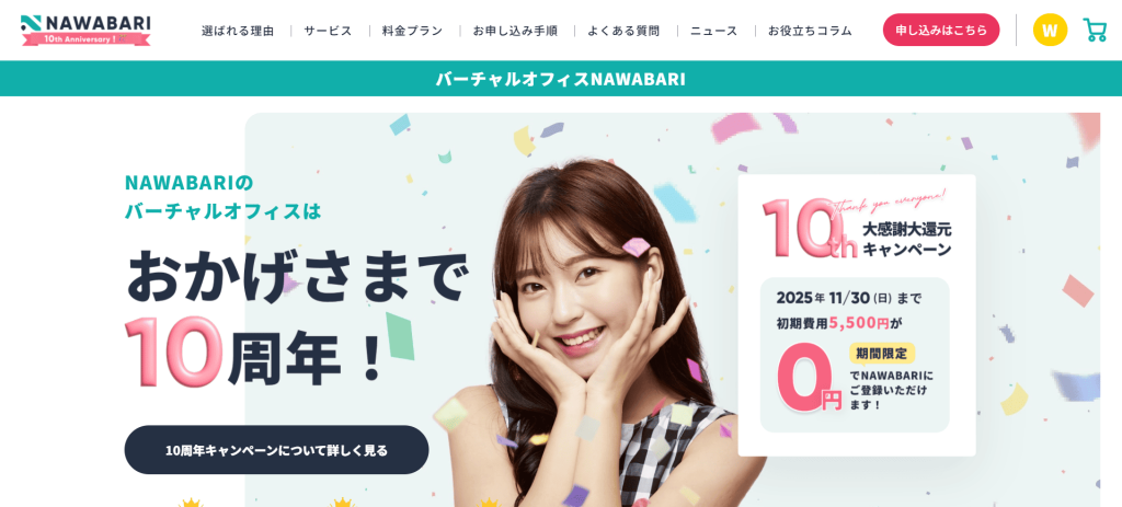 NAWABARIは、低コストで多機能なビジネスサポートを提供するバーチャルオフィスサービスです。