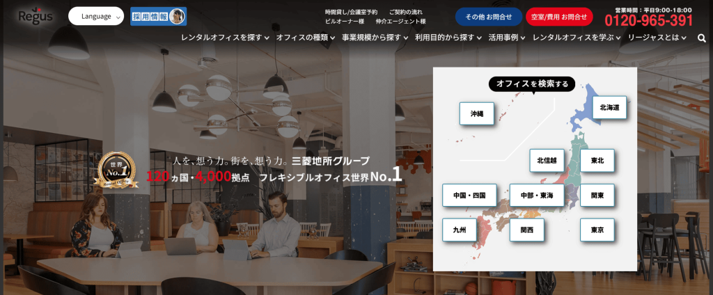 リージャス(Regus)は、世界120カ国以上に4,000以上の拠点を持つ世界最大級のバーチャルオフィスサービスプロバイダーです。