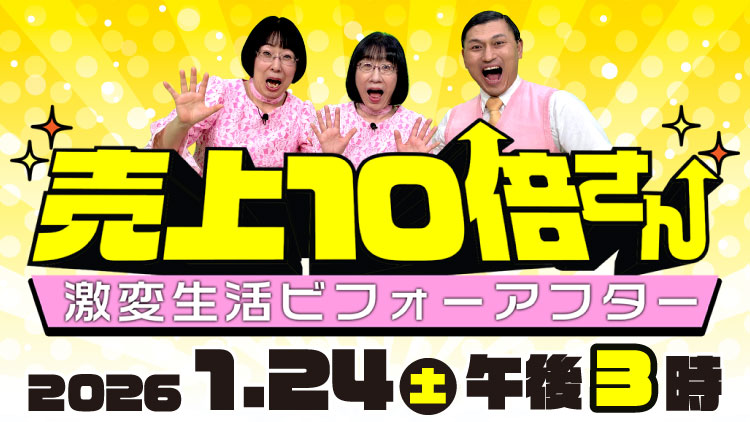 「売上10倍さん 激変生活ビフォーアフター」1/24(土)15:00~ ※福島中央テレビホームページに移動します
