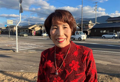 高校1年の長男・大地さんを自転車事故で亡くした経験をもとに、「命の大切さ」と「交通安全」の講演活動を展開。事故を契機に愛媛県内では高校生の自転車ヘルメット着用が校則化され、以後10年にわたり県内外の学校・自治体で実体験に基づく講演を続ける。手作り資料による「命の授業」は延べ80回以上。著書『大地の花束』では遺族の視点を社会に伝え、講演と連動した教材としても活用されている。新たな交通マナー「ハザードランプ・コミュニケーション」の提唱や、ヘルメット啓発動画への出演など多方面で活動。子供達の命を守りたいと、県外からの講演依頼が増えている。