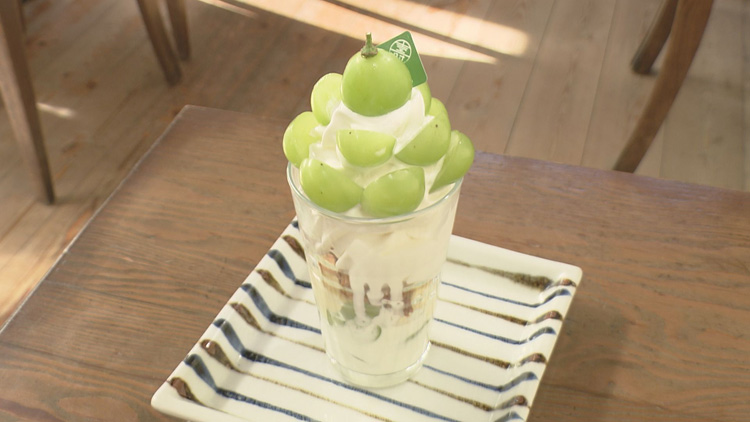 - シャインマスカットパフェ 1500円(税込)、砥部焼ショートケーキ(限定品) 1300円(税込)、ジュタロウランチ 1700円~(税込)